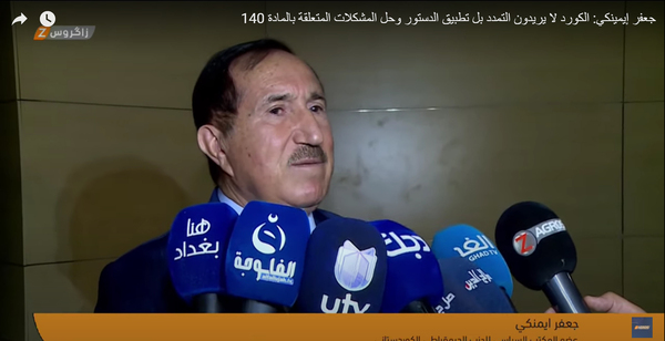 قال عضو المكتب السياسي للحزب الديمقراطي الكوردستاني، جعفر إيمينكي، إن الكورد لا يريدون التمدد إنما يريدون تطبق الدستور، وهو الحل لمشكلات المتعلقة بتطبيق المادة 140، فيما ذكر أن العشائر العربية راغبة في التعايش، لكن "الخلل" في السياسيين الذين يرفضون ذلك.