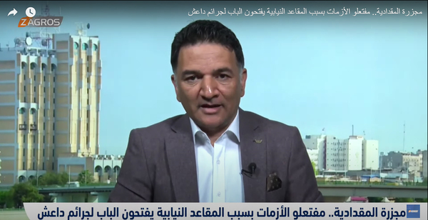 العزاوي، قال خلال لقاء مع فضائية زاكروس، اليوم الأربعاء (27 تشرين الأول 2021)، حول تصريحات زعيم التيار الصدري مقتدى الصدر عن هجوم المقدادية إن " مقتدى الصدر استشعر الخطر سريعا وقال إن المناكفات السياسية هي التي تعطي مساحة للإرهابيين أن ينقضوا على المدنيين بسهولة وبالتالي هنالك خلل مشخص"، مبيناً أن هذه "ليست المرة الأولى التي يكون فيها هكذا استباحة لدماء العراقيين، وبتقديري ليست الأخيرة إن لم يكن هناك ردع حقيقي وجاد".